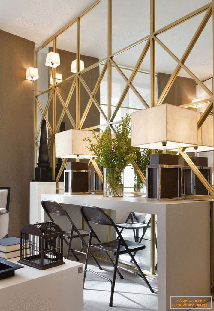 Ena od skrivnosti je obilje odsevnih površin. Učinkovit sijajni premaz je prisoten pri videzu različnih elementov po celotni hiši. Orta v kuhinji, elegantna tla v dnevni sobi v kombinaciji z jedilnico - sijaj dobesedno prebija prostor, zaradi česar je lažje in večje!