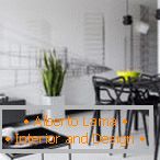 Razdelitev tega prostora v cone povzroča uporabo skupne svetlobe in poudarjanje posameznih področij. Kuhinjski kompleti so pogosto opremljeni z vgrajenimi napravami, drugače lahko pri zgornjih predalih pritrdite več energetsko varčnih naprav. Nad jedilno mizo so nameščeni dolgi viseči stropi ali tirne strukture. Glavna stvar je, da ne uporabljate svetilk s modro sijočo - zaradi tega se jedi ne počutijo neprimerno.