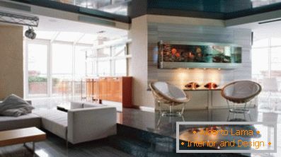 Skromen prostor prostora, nevtralna siva-modra barvna paleta v dekorju, klasični pohištveni set in svetle dele, pritegnejo pozornost in javni interes za ta projekt.
